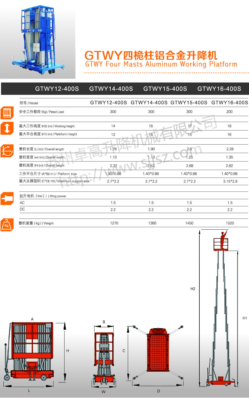 GTWY四桅式鋁合金升降平臺